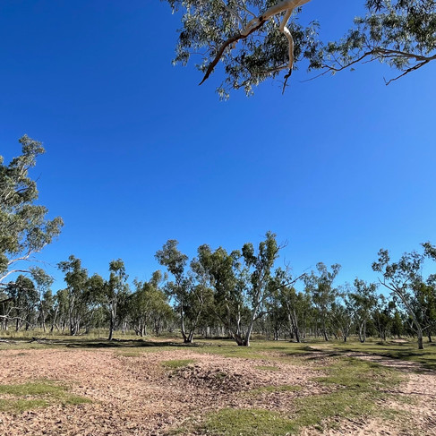 Via Emerald en Alpha ben ik ondertussen in Barcaldine aangekomen over de Capricorn Highway. Deze is zo genoemd omdat hij langs de Steenbokskeerkring loopt. Het landschap wordt steeds leger en vlakker en droger, maar er zijn nog steeds hier en daar bomen. Langs de weg zie ik ontelbaar veel kleine rode heuveltjes, gebouwd door de witte mieren. Het zijn net kleine kabouter puntmutsjes.