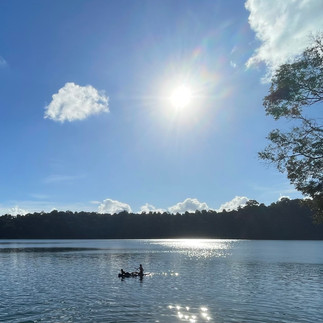 In de middag zwemmen in Lake Eacham, een wonderschoon kratermeer omringt door regenwoud. Het verhaal gaat dat er ƩƩn klein zoetwater krokodilletje woont, die heel verlegen is en zich bijna nooit laat zien. Maar soms dus wel..... dit filmpje vond ik nadat ik een paar keer heerlijk gezwommen had.