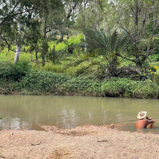 Hier in Innot Hot Springs kun je langs de rivier een je eigen warm water badje maken. Het water in de rivier is lauw, maar zodra je een kuil graaft in het zand komt er heel heet water naar boven. Je kan ook in de ernaast gelegen warmwater baden gaan zitten. Er zijn vier warme baden, waarvan ƩƩn zo heet is dat ik er niet ik kan zitten. Er is zelfs een redelijk koud bad, bijzonder omdat Aussies absoluut niet van koud houden, behalve koud bier dan.